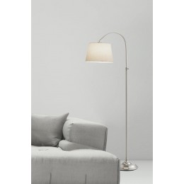 The Bedford Shelf Floor Lamp captures the rustic feel with natural tones and a contemporary silhouette. The rich solid walnut wood tripod base pairs beautifully with an oatmeal linen fabric shade. Modern styling is revealed through the sharp tripod frame and a brushed steel accent on the neck. With a 14” round walnut wood shelf, this lamp functions as both a source of light and a practical storage space. An on/off rotary switch is located below the socket. A sleek, decorative brown fabric covered cord hangs down through the tripod frame. This lamp is smart outlet compatible. Bulb is not included.