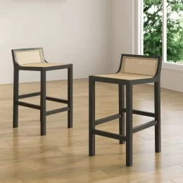The Circle Nightstand is an art deco inspired bedroom nightstand with an alluring design. It features 2 spacious shelves revealed behind a classic hinge door. Its door facade is accented by a glistening brass finished peg handle and a large circle taking center stage. Similar to the traditional sunburst patterns during the art deco period of design, this is a contemporary take on a classic style. The large circle is made from natural cane in a woven pattern. It is supported by a sturdy 4-legged conical base. Due to its combination of traditional and contemporary features, it could easily be mistaken for a modern antique. It is available in 3 wood finishes, including a bold black finish.