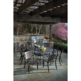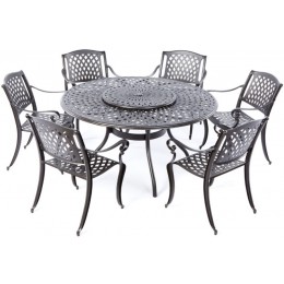 Cornwall Woven Wood Set With 71" Rectangular Wood Dining Table With Umbrella Hole and 6 Dining Arm Chairs With Sunbrella Cast Shale Cushions is the perfect matching set for your garden setup. Built with a durable and long lasting cast aluminum material, this will surely be a piece that has durability and look that will last with any weather condition.
