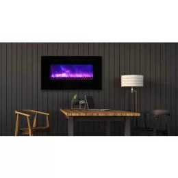 • Amantii 60" Flush Mount fireplace with Black Glass Surround And Log set - Purple Flame