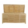 This solid teak Amberly Storage Box is a stylish way to store things on your backyard, deck, and pool area. It is the perfect teak furniture accessory to place your outdoor furniture cushions, sport equipment, or pool equipment. Featuring built in ventilated sides to keep your belongings free of mold and mildew, the Amberly storage box can be used to compliment any room in your home for additional storage such as a children toy box, towels, and is sturdy enough to be used for temporary seating. Made from All Premium Unfinished Teak wood, it is designed to withstand the weathering sun, rain or hail of the outdoors. Hardware includes Solid brass fixtures, sized 62”W 26”D 28”H.