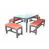Rain, snow and extreme temperatures will not affect the beauty of this synthetic rattan durable furniture. Sorrento collection by Anderson is a 5-piece dining set with rectangular table, 2 long & 2 short backless bench. This great collection features hand-selected, carefree and environmentally friendly materials that will last for years to come. Furniture designed can be use for indoor and outdoor. The long backless bench can be push completely in under the table for space saving.