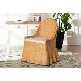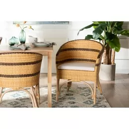 Elevate the atmosphere of your space with the rustic refinement of the Beata dining chair. Made in Indonesia, this bohemian piece consists of a solid mahogany wood frame wrapped in sustainably sourced natural rattan. Its wingback frame creates a tranquil display from every angle while the woven detailing lends a light and breezy display. The Beata will arrive fully assembled and is fitted with an ergonomic footrest to encourage casual comfort. A fantastic expression of exotic leisure, the Beata dining chair uplifts any occasion.