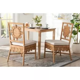 Baxton Studio bali & pari Sofia Rattan Dining Chair with Cushion