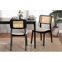 Baxton Studio Ulyana Mid-Century Grey Fabric and Dirty Oak Finished Wood 2-Piece Dining Chair Set