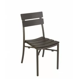 The Capri series is available in a Silver Mist and Bronze frame finish that’s constructed of durable aluminum. These stackable cost effective frames, along with the flexibility of matching table and bases in standard sizes, makes this a perfect addition to any outdoor urban, industrial space, craft brew pub, contemporary restaurant, rustic bar, fine dining patio or bistro dining areas! While this classic frame design ensures comfort, the seat slats provide optimal support that adds a distinct visual appearance to your outdoor patio space.