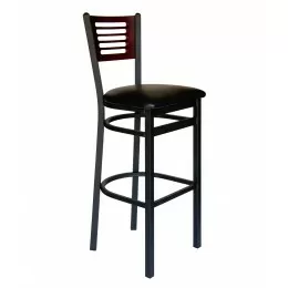 The Darby side chair, barstool, swivel barstool and Trent backless are available in sand black finish that’s constructed of gauge steel. This industrial frame with port hole wood back pairs well with a wide array of solid wood seats in matching standard finishes like natural, walnut, black, mahogany and cherry along with many colors and types of vinyl or fabric coverings. This flexibility makes for a perfect addition to any industrial space, craft brew pub, contemporary restaurant, rustic bar, fine dining or bistro dining areas! While the seat design ensures comfort, the high back provides optimal support, that adds a distinct visual appearance to your space.