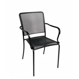The Kingston series is available in a Black powder coat finish that’s constructed of durable e-coated steel. These stackable frames, along with the flexibility of a side chair, arm chair and barstools, makes this a perfect addition to any outdoor urban, industrial space, craft brew pub, contemporary restaurant, rustic bar, fine dining or bistro dining areas! While the clean modern frame design ensures comfort, the micro mesh seat provides optimal support that adds a distinct visual appearance to your outdoor patio space.