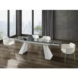 Our X BASE dining table seats 8 is constructed using top materials with stainless steel, glass with exceptional quality that are made to last.