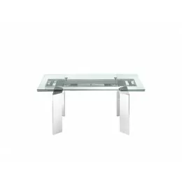 The X BASE non-extendable frame dining table in clear glass with polished stainless steel base by Talenti Casa features clean, modern lines adding a sophisticated look and edge to any room.