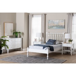 • Baxton Studio Denita Spindle Twin 4-Piece Bedroom Set in White - nightstand
