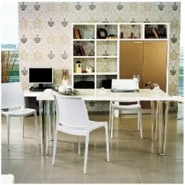 The Romeo Resin Dining Arm Chair is made from commercial grade resin with anodized aluminum legs including non-skid rubber caps. It is extremely durable for outdoor temperatures and is perfect for heavy use in any indoor or outdoor areas. This chair is maintenance free, easy to keep clean and stackable for easy storage.