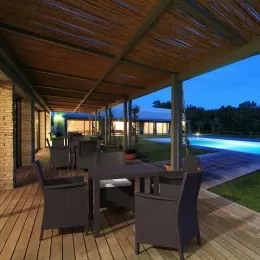 Compamia Sky 9-Piece Extendable Dining Set is composed of six dining chairs and one dining table that extends from 102 inches to 118 inches. Contemporary design combined with commercial strength, this set is made from marine grade polypropylene resin reinforced with fiber glass. Chairs are made with polypropylene construction and a poly seat. So elegant that it is suitable for indoors, so durable that it is used outdoors. Perfect for heavy use areas.