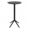 Sky round bar table with folding top. Resin top with the latest generation of air moulding thermoplastic legs. For indoor and outdoor use. Can be disassembled.