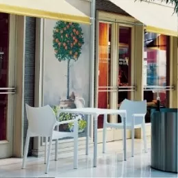 Sunshine resin stackable arm chair. Made from commercial grade resin plastic. Used by state parks, pools, restaurants, cafes and hotels. Resistant to suntan oils, chlorine, sun, rain and all weather conditions.
