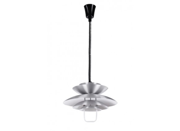 The Ballerup pendant lamp combines five solid aluminum forms with an attached handle at the bottom. The handle enables you to draw the lamp down or raise it up closer to the ceiling. Black helix cord and a retractable cable provide for light at any height you desire. Illumination comes from one E26 100W bulb (MAX) bulb (not included).