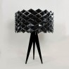 The Black Jack table lamp features a shade that you can custom shift between black and white patterns. The encircling shade has rows of diamond shapes that are made of polished ABS plastic--black on one side, white on the other. Each piece can be turned and angled to show black or white, creating a great variety of appearances. The tripod base is made from carbon steel and has a black finish. Illumination comes from one E27 60W bulb (not included).