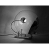 Resting upon a chrome base, the clear glass globe of the Genesis table lamp is partially mirrored. Light from one GU10 75W bulb (included) that is at the center of the globe is projected to reflect off the mirror finish. The globe is free to move on its metal stand to cast light in any direction.