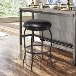 The Armen Living Lotus contemporary armless barstool features a unique aesthetic that is certain to work well in any contemporary household. A beautiful geometric back provides excellent lumbar support while serving as a stylish contemporary accent. The Lotus' durable stainless steel finish metal frame is accompanied beautifully by its Grey faux leather seat. 360 degree swivel action and added footrest provide both a wide range of motion and stability while seated. Available in two industry standard sizes; 26 inch counter and 30 inch bar height.
