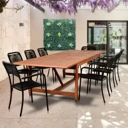 International Home Miami Atlantic Oosterdam 9 Piece Rectangular Patio Dining Set is the perfect match for every patio and will give your backyard the class and elegance for outdoor dining. This set combines luxury, beauty, comfort, and an affordable price. This lightweight aluminium furniture is made from the highest quality alloys and is based on a framework of only new aluminium which maintains the original quality of the material. Aluminium, once coated is 100% rust-free. This chair combines luxury, beauty, comfort, and an affordable price. It is made of aluminum and rope. Each chair is also coated with Duracoat®, polymer-based, multi-layer powder coating for effective protection from the weather. Table top consists of Durawood® in a teak finish which is built to last a lifetime. Its unique blend of high quality eucalyptus sawdust and polyethylene resin creates a strong, durable product that will last a lifetime in the outdoor environment. This contemporary set is primarily designed for outdoor purposes but can also be used indoors giving your home a modern touch. Durable and well-designed construction is key components of this great patio set.