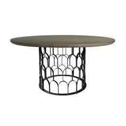 The Armen Living Gatsby Oak and Metal Round Dining Table is 55 inches in diameter and easily seats up to 4 people. This table features a beautiful metal base with a warm oak top allowing it to easily fit in to any current design theme in your home. The Gatsby Dining Table is also available with a concrete top.