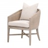 Experience comfort in style with the McGuire Arm Chair by Essentials For Living. This transitional masterpiece measures 23.5" wide, 27.5" deep, and 37" high, with a 20.5” seat height. Meticulously crafted, it features a solid oak wood frame enveloped in natural gray rattan, exuding sophistication with organic and earthy elements. Its LiveSmart Gellar-Linen upholstery ensures resilience and easy upkeep, while the intricately cane-wrapped surround detail adds artisanal flair. Nestle into the removable and reversible seat cushion filled with a sumptuous blend of 50% polyester and 50% down feather, accompanied by a coordinating square throw pillow. With an "X" stretcher base design for both stability and visual appeal, this chair seamlessly merges high performance with superior craftsmanship, elevating any living space.
