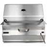 Fire Magic has taken the charcoal grill and kicked it up several notches.. All Stainless Steel, adjustable height charcoal pans allow you to control the heat, while front loading door permits easy re-fueling. The unique Air-Flow charcoal pan produces hotter coals and more reliable heat. Use either the convection roll-top hood or the smoker hood. The smoker hood is designed for the serious meat smoker, it allows the ultimate control of the flame utilizing massive air shutters of each side and temperature gauge so you can get the grill temperature very low - for the ultimate in slow smoking.