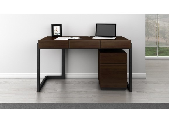 Furnitech’s FT56CWD writing desk features clean contemporary lines and a dramatic display of beautiful natural walnut book matched veneers and solid Brazilian cherry wood leg elements in an ebony finish.