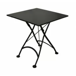 This folding bistro table by Furniture Designhouse has been designed and hand-forged in Europe by 'old world' artisans, using the finest materials and built to last a lifetime. From the hand-crafted steel frames and wood seating and dining surfaces, to the standard architectural finish that is UV, Scratch and Salt-spray resistant… this lovely French Café bistro furniture is second to none and backed by an industry leading three-year warranty! Table top is an ultra durable solid metal surface.