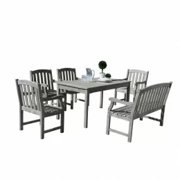 Furniture Designhouse Seven Piece Dining Set with 32" x 72" Aftrican Teak Slat Table Top and Six Veronique Foldoing Side Chairs