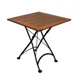 A well-crafted and unique folding table, designed and hand-forged at our factory in Europe by our 'old world' artisans. The drawn steel frames are treated for rust-resistance in a multi-stage proprietary process, prior to receiving a specially formulated, scratch resistant, exterior furniture grade powder coating. The 100% polyester baked anti-UV powder coating is the highest quality available and specially formulated by the world's premier producer of powder coatings. We incorporate design elements to ensure that our products are not just good looking but functional and long lasting. Table Top slats are European Chestnut.