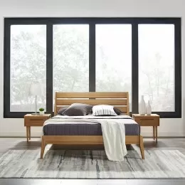 Showcasing the beautiful color and grain of solid bamboo, the Azara platform bed features contemporary styling, clean lines and a stunning headboard accent in exotic tiger bamboo. The Azara platform bed is designed for use with a mattress only, which is supported with a solid bamboo European slat system, eliminates the need for a box spring, and provides constant ventilation for your mattress. Available in Queen, King, and California king sizes, in your choice of caramelized or rich Sable finish. Crafted in solid Moso bamboo, the Azara’s elegant silhouette creates a timeless look to complement any style.