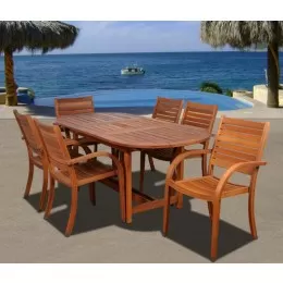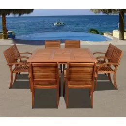 Great Quality, elegant design patio set, made of solid eucalyptus wood. FSC (Forest Stewardship Council) certified. Enjoy your patio with style with these great sets from our Amazonia outdoor collection.Free Feron Gard Wood Preservative for longest strap durability. It works great against the effects of air pollution salt air, and mildew growth. For best protection, perform this maintenance every season or as often as desired