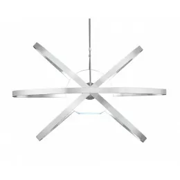 This modern chandelier is a beautiful focal point through living, lounge and dining spaces. Features six round lights in black and gold iron.