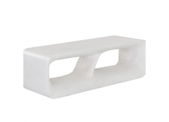 Smooth and polished edges define this contemporary bench that features an artistic design. Crafted from white concrete with a terrazzo finish. Suitable for indoor and outdoor covered spaces.