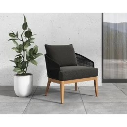 Modern with a contemporary flair, this armless swivel lounge chair from our Outdoor by SUNPAN collection will seat guests comfortably. Upholstered in fontelina grey fabric with a teak wood base. Teak wood will develop a silver-grey finish over time.