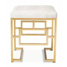 Stylish and cozy, the Baxton Studio Leonie White Faux Fur Upholstered Ottoman makes a bold statement in any space. Upholstered in white faux fur, the Leonie looks and feels highly luxurious. The gold-toned metal base features a striking geometric design that complements the natural look of the faux fur. This versatile piece is well suited for use as a vanity seat or as a footstool. The Leonie ottoman is made in China and will arrive fully assembled.