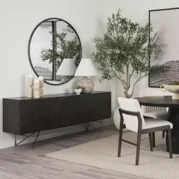 The Varenna Sideboard is meticulously fashioned from rich, dark brown solid elm wood, with an engineered wood and elegant elm veneer finish. Its sophisticated design boasts a sleek rounded-edge frame … Read More