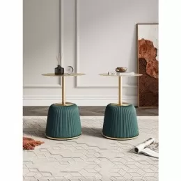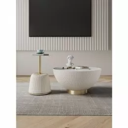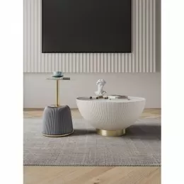 Introducing the Manhattan Comfort Modern Anderson Coffee Table and End Table set, a striking and versatile addition to your living and dining spaces. Crafted with artistic flair, it features unique leatherette pleating and beautiful gold metal finishes that add a touch of stunning design to your home decor. Built with a high-quality steel frame and feet, this table effortlessly combines style and durability. Pair it with our other Manhattan Comfort End Tables to create a cohesive and stylish look, making your living and dining areas stand out.