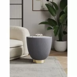 • Manhattan Comfort Modern Anderson End Table 1.0 Upholstered in Leatherette with Gold Tabletop Grey