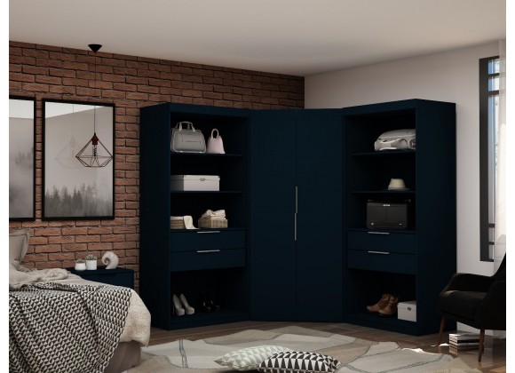 • Manhattan Comfort Mulberry 2.0 Semi Open 3 Sectional Modern Wardrobe Corner Closet with 4 Drawers - Set of 3 in Tatiana Midnight Blue