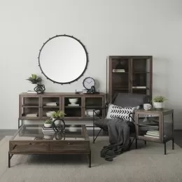 The Callum Curio Cabinet combines timeless craftsmanship with modern elegance, featuring elm wood construction finished in a light brown stain with a subtle white wash. Its graceful arched design is … Read More