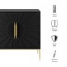 The Awaken 35" Accent Cabinet brings intricate modernity to your space. Featuring clean lines in a radial formation, this small storage cabinet is crafted from wood veneer and rests on a sleek gold base with non-marking foot pads to protect your floors. The doors showcase a striking sunburst design, with radiating lines that form a dynamic and visually captivating pattern. Accentuated by gold hardware, this piece offers an adjustable shelf perfect for storing linens, home décor, silverware, barware, and more. Ideal for the hallway, entryway, or living room, this two-door cabinet combines functionality with style. Assembly required. Weight capacity: 200 lbs.