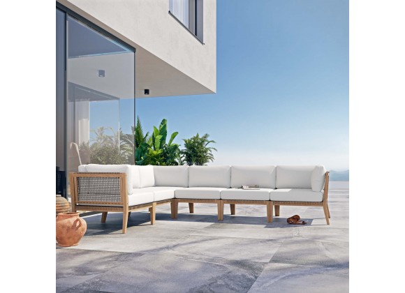 Modway Clearwater Outdoor Patio Teak Wood 6-Piece Sectional Sofa - Gray White - Lifestyle