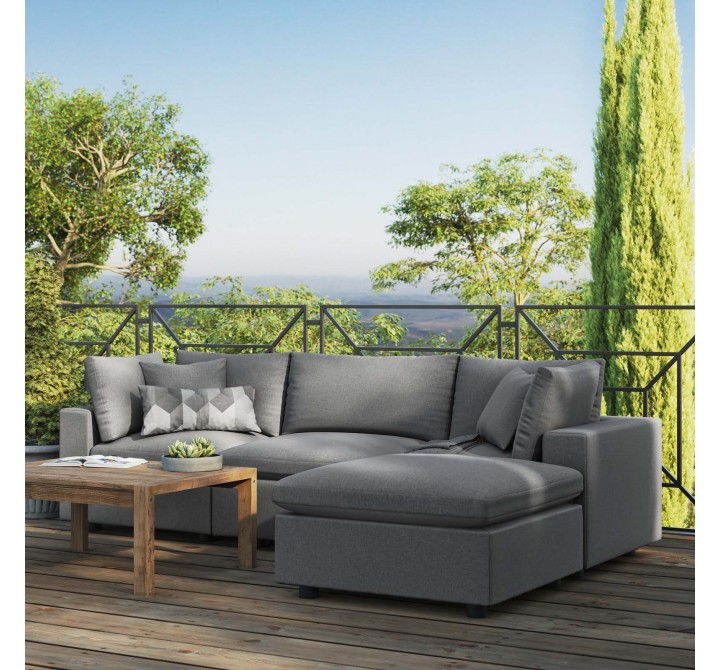 Modway Commix 4-Piece Outdoor Patio Sectional Sofa - Charcoal - Lifestyle