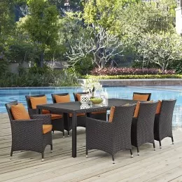 Modway Convene 9 Piece Outdoor Patio Sectional Set - Espresso White