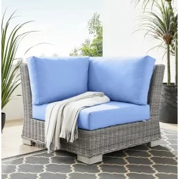 "Enjoy fresh air and alfresco relaxation with the Conway Outdoor Patio Wicker Rattan Left-Arm Sectional Sofa Chair. Wrapped in UV-resistant light gray synthetic wicker rattan, this sectional sofa piece boasts organic texture and a neutral hue that brings a calming presence to your outdoor area with a modular design that adapts to variety of configurations to suit your space. The frame of this outdoor chair is crafted with durable powder-coated aluminum and rests on L-shaped legs with plastic foot glides. Thick foam padded cushions covered with removable, water-resistant polyester covers offer a comfortable seat and affix securely to the left-arm chair with cord tension attachments. Trending aesthetics and a classic design define this outdoor patio furniture collection making it a beautiful addition to any outdoor space including the backyard, patio, porch, balcony, or poolside. Assembly required. Patio Chair Weight Capacity: 300 lbs.
