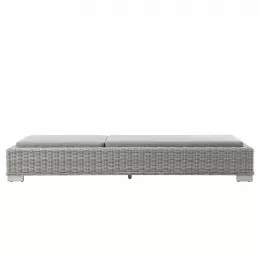 • Modway Conway Outdoor Patio Wicker Rattan Ottoman in Light Gray White - Lifestyle