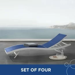 "Enjoy warm sunshine and serene relaxation with the Glimpse Outdoor Patio Chaise Lounge Chair Set of 2. A contemporary update to your outdoor living space, Glimpse comes with a breathable Textilene® mesh seat for ergonomic comfort and support, a long-lasting, powder-coated aluminum frame, and non-marking foot caps. Sit back and relax as you choose from four height adjustable recline positions. Perfect for the backyard, patio, or poolside, this outdoor lounger features sweeping lines, splayed legs, and a fresh, modern aesthetic.