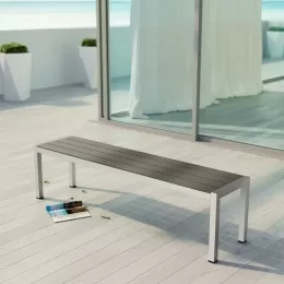 "Enjoy your patio or backyard leisure time with the strong and durable Shore Outdoor Patio Armless Bar Stool. Made with an anodized brushed aluminum frame, sturdy footrest, and non-marking black plastic foot caps, Shore Patio Armless Bar Stool features tone-on-tone grays with wood accents on the paneling for a chic and minimalist look. The Shore Outdoor Bar Stool complements your casual gatherings with the versatility you’ve been looking for in a patio bar stool.